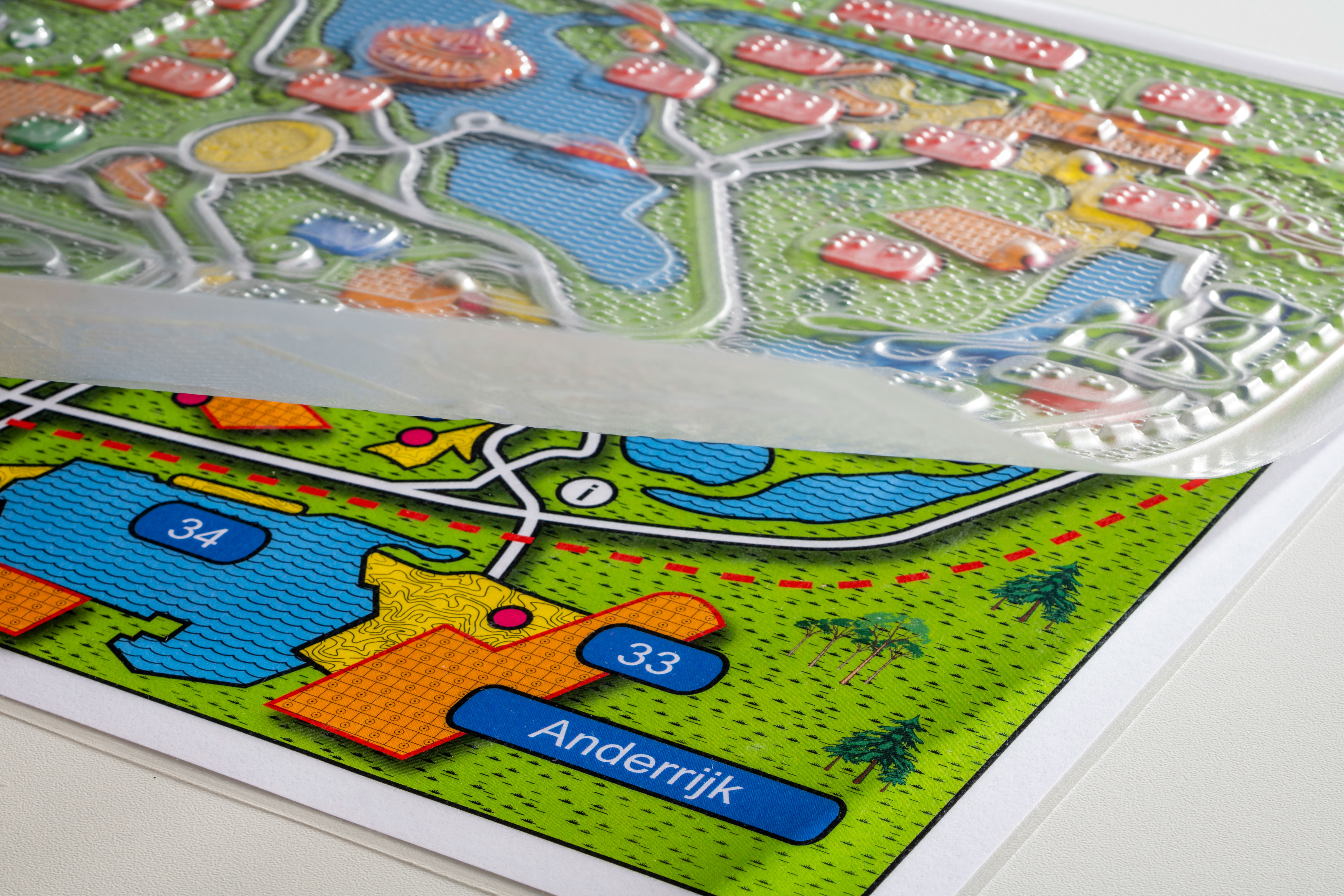 Gelukkig lag de oplossing voor de hand. En dus gingen de experts van Dedicon ermee aan de slag. Mallen werden gemaakt, de machines begonnen te stampen. Nog een beetje bijschaven, een dagje testen en ta-daa. Het resultaat? Een voelbare overzichtskaart van de Efteling voorzien van braille en contrastrijke kleuren. Daarmee kunnen blinde én slechtziende pretparkbezoekers zich tot in de puntjes voorbereiden. Voorpret gegarandeerd!